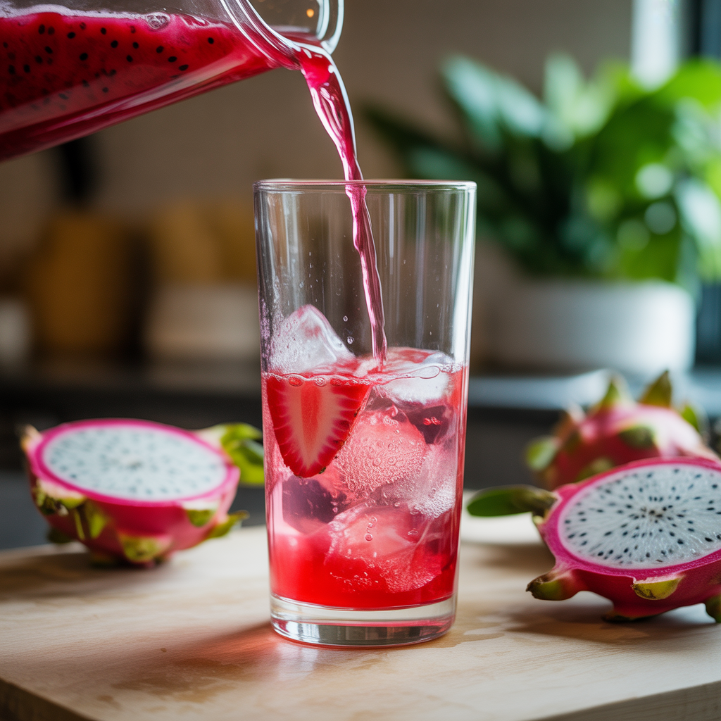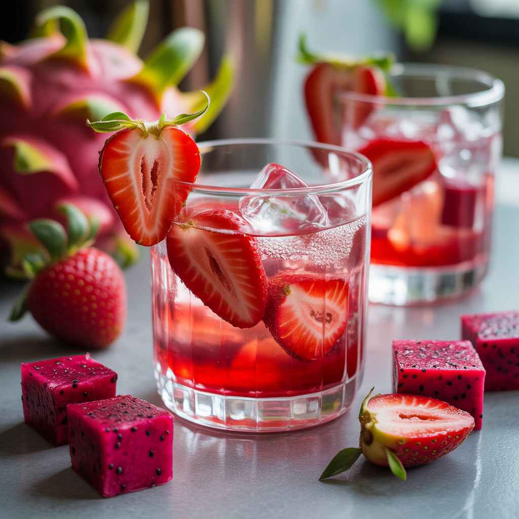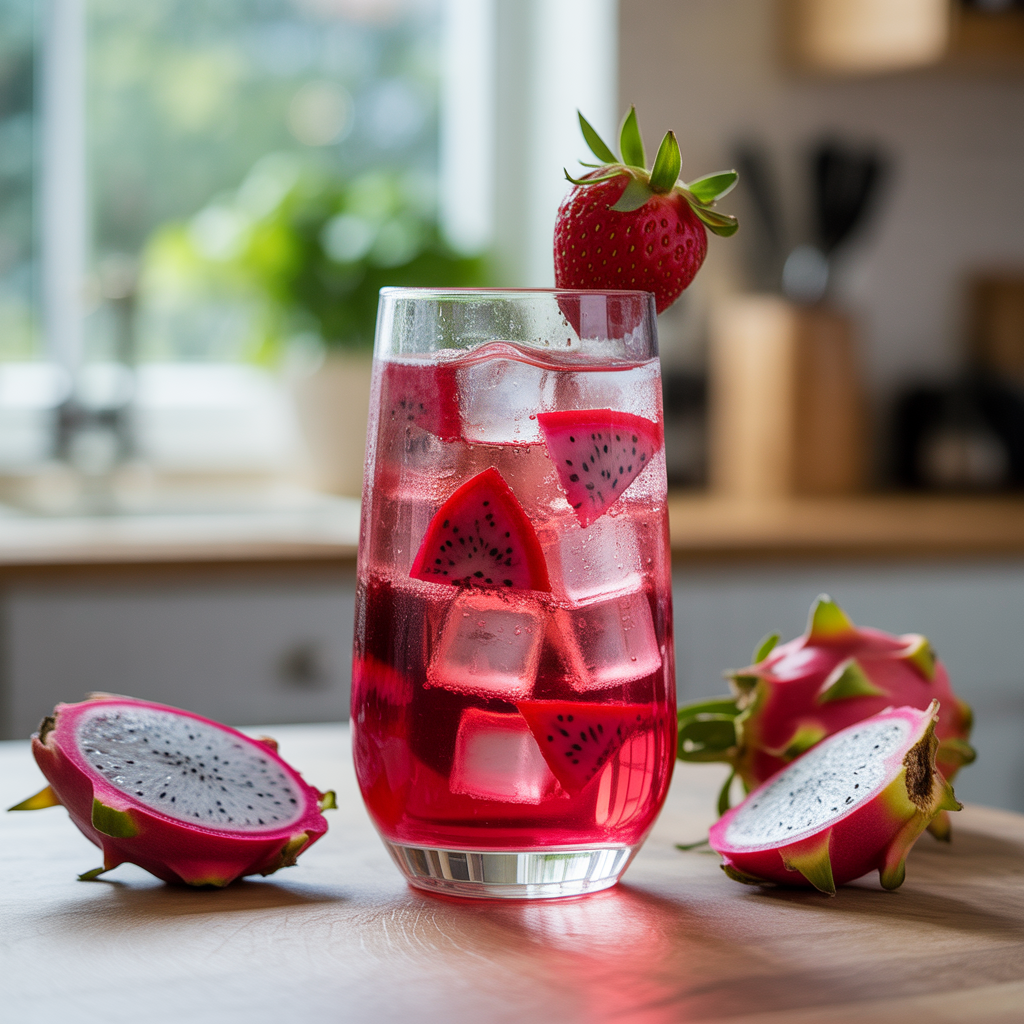 Serve in tall clear glasses to highlight that bold pink hue. Add fresh strawberry slices or a few extra dragonfruit cubes on top for a polished, café-style presentation.