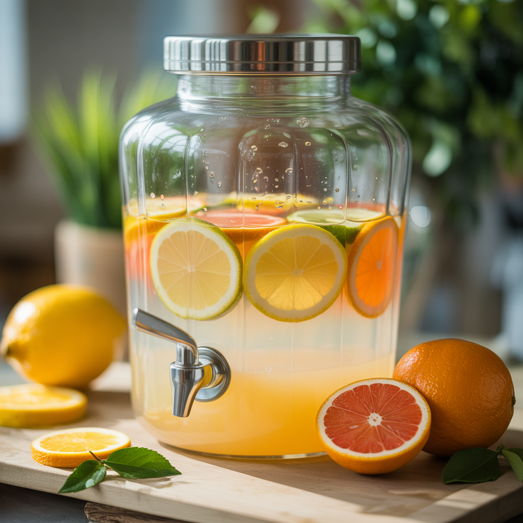 Serve in clear cups with pastel paper straws. Add a small bowl of extra citrus slices so guests can customize.