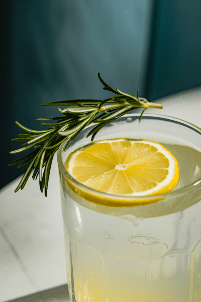 Give the drink a gentle stir — just enough to bring it together without knocking out the fizz. Garnish with a slice of lemon or lime and a sprig of herbs if you have them. The result should look airy, pale, and inviting.