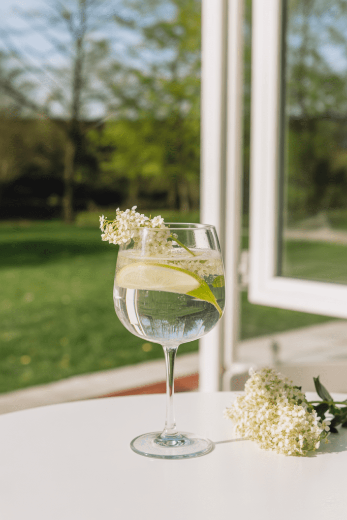 Serve this elderflower gin spritz well chilled, ideally in the late afternoon or early evening. It pairs naturally with light snacks, pastries, or simple appetizers.