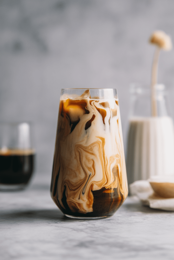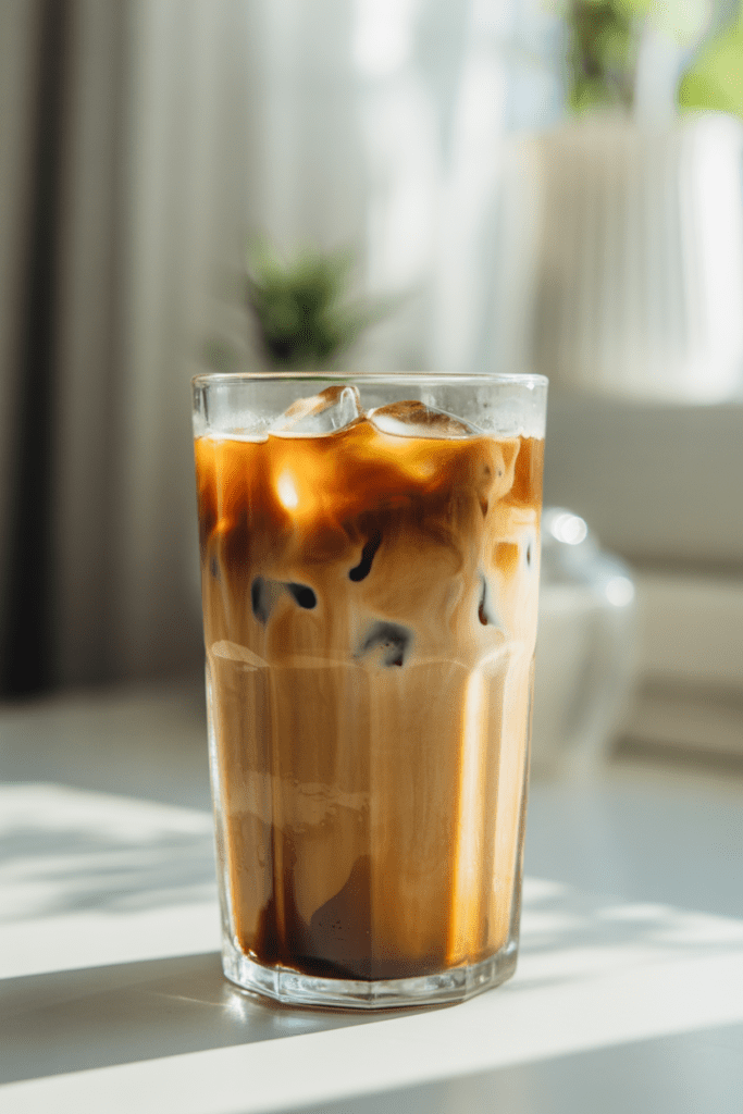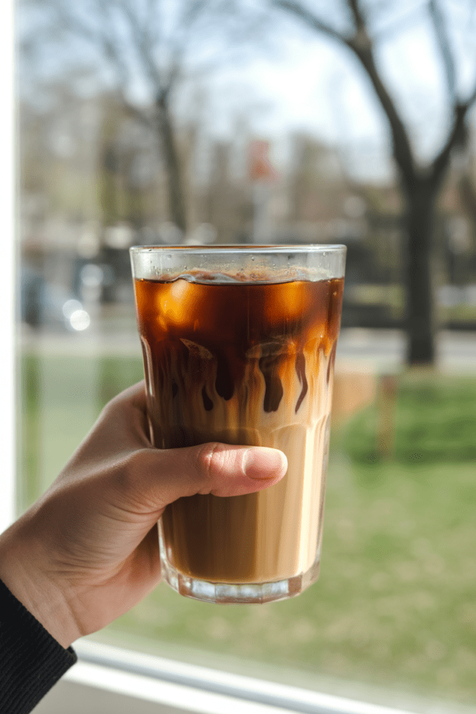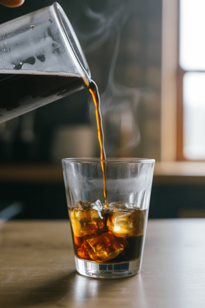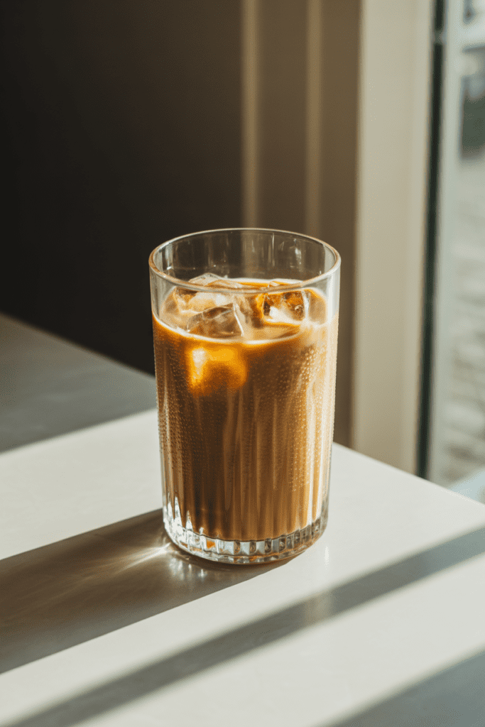 Fill a tall glass with ice. As you pour the coffee over it, you’ll hear that soft crackle as the ice meets the liquid and the glass fogs up just a bit. That sound alone feels refreshing.